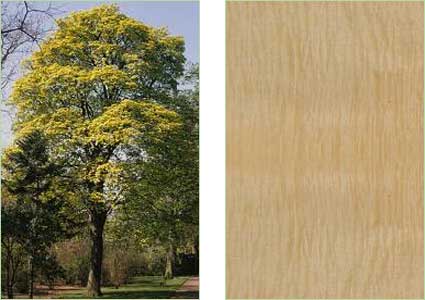 Il colore del legno è biancastro-giallognolo senza differenziazione tra alburno e durame. La segagione, la piallatura e la levigatura danno ottimi risultati senza particolari difficoltà. L'essiccazione è rapida e facile: possono però insediarsi alterazioni cromatiche che si prevengono con una buona ventilazione con una listellatura più alta. Alla sfogliatura si ricorre raramente mentre è correntemente praticata la tranciatura con la quale si ricavano dei fogli con fibratura ondulata molto gradevoli alla vista.
